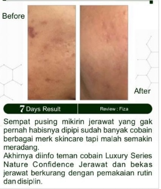Salah satu nya new generation vit C Nature Confidence gunakan berbeda dengan vit C biasa , new generation vit c Nature Confidence memakai nano teknology terbaru yang dapat menyerap kekulit lapisan terdalam sehingga memperbaiki regenerasi kulit lebih cepat dan efektif memperbaiki kulit yg rusak (skin repair) sekaligus bisa jadi anti inflamasi terhadap kulit, jadi vit c biasa terkadang bisa breaksi menjadi jerawat ,vit C di Nature Confidence serum malah sebaliknya bisa mengobati dan juga lebih stabil, bahkan bisa untuk melindungi dari radikal bebas dan sinar matahari dan ada beberapa ingrediets lainnya yang juga luar biasa efeknya ke kulit seperti copper tri peptide yang kita gunakan berbeda dari peptide lainnya.