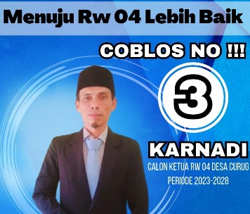 Karnadi mendapatkan nomor urut 3 dalam pemilihan RW 04. Ia meminta restu dan dukungan dari warga RW 04 desa Curug, Gunung Sindur.