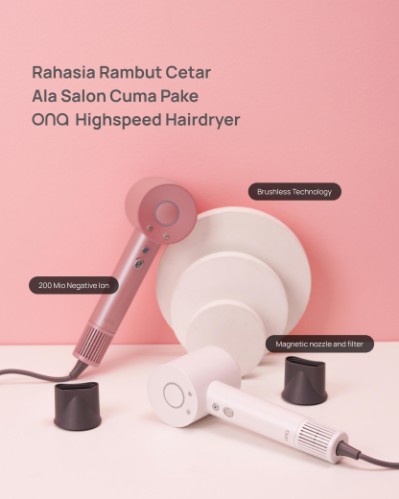 Brand yang memiliki target pasar di atas usia 24 tahun ini baru saja merilis produk andalan terbarunya. Dan yang menjadi signature produk Ona, Highspeed hairdryer yang bisa mengeringkan rambut dibawah 4 menit versus predecessornya yaitu hairdryer kovensional biasa memakan waktu 15-40 menit utk mengeringkan rambut.